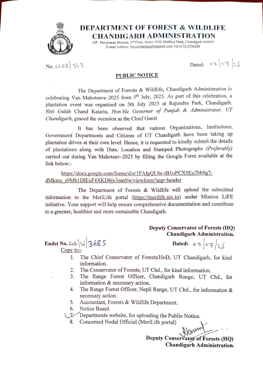 Department of Forests & Wildlife, UT of Chandigarh repeatedly & very beautifully committed towards greener and cleaner Chandigarh.