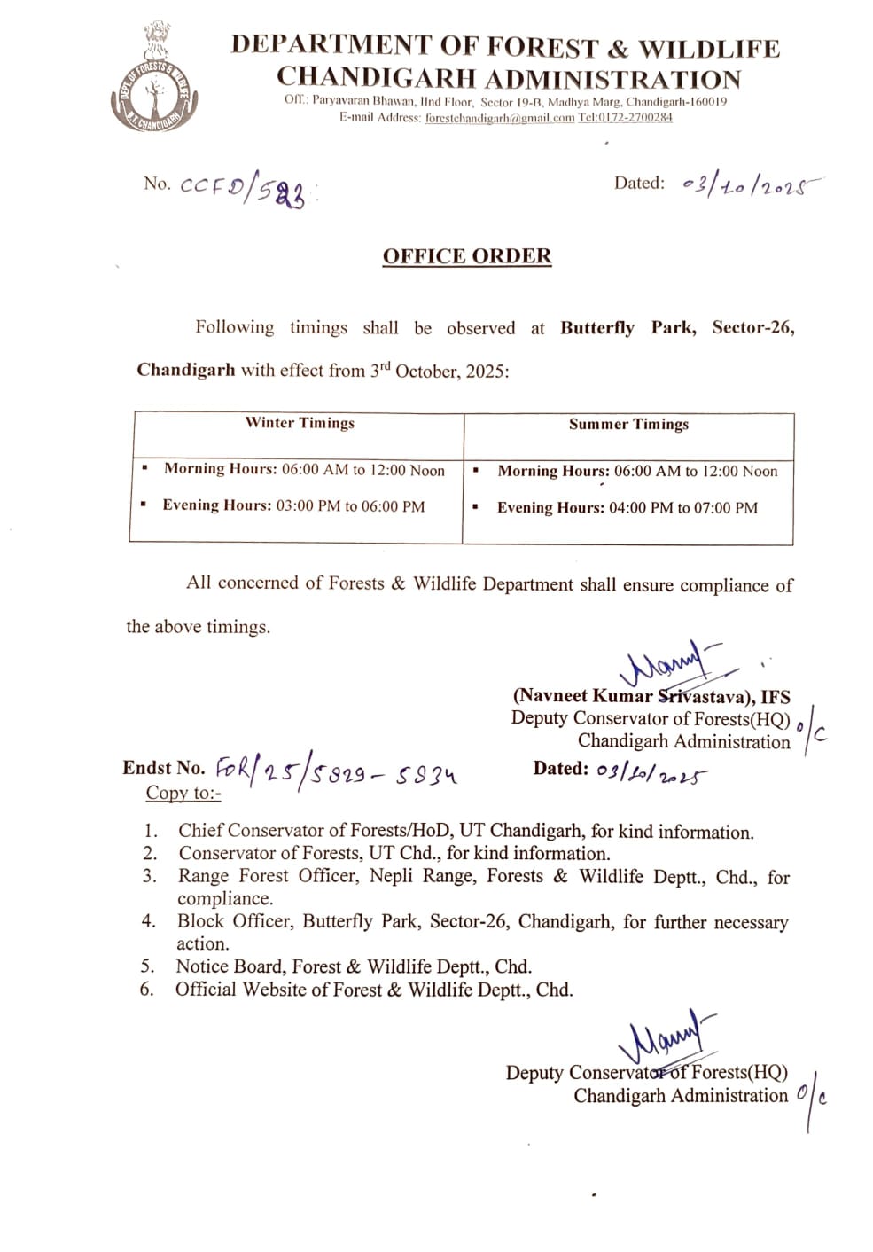 Conservator of Forests, Chandigarh Administration, UT, Chandigarh